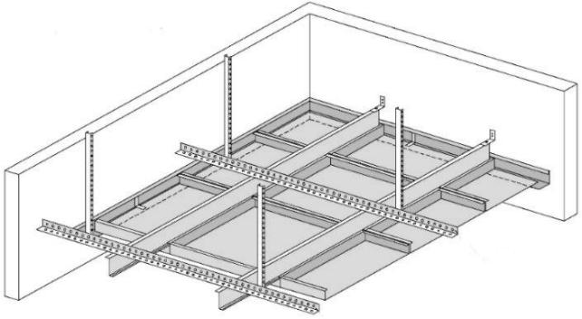 Unterkonstruktion aus Einhängeprofilen und Querprofilen aus